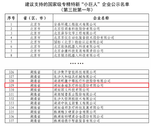 重點(diǎn)支持!泰瑞入選國(guó)家級(jí)重點(diǎn)專精特新“小巨人”企業(yè)
